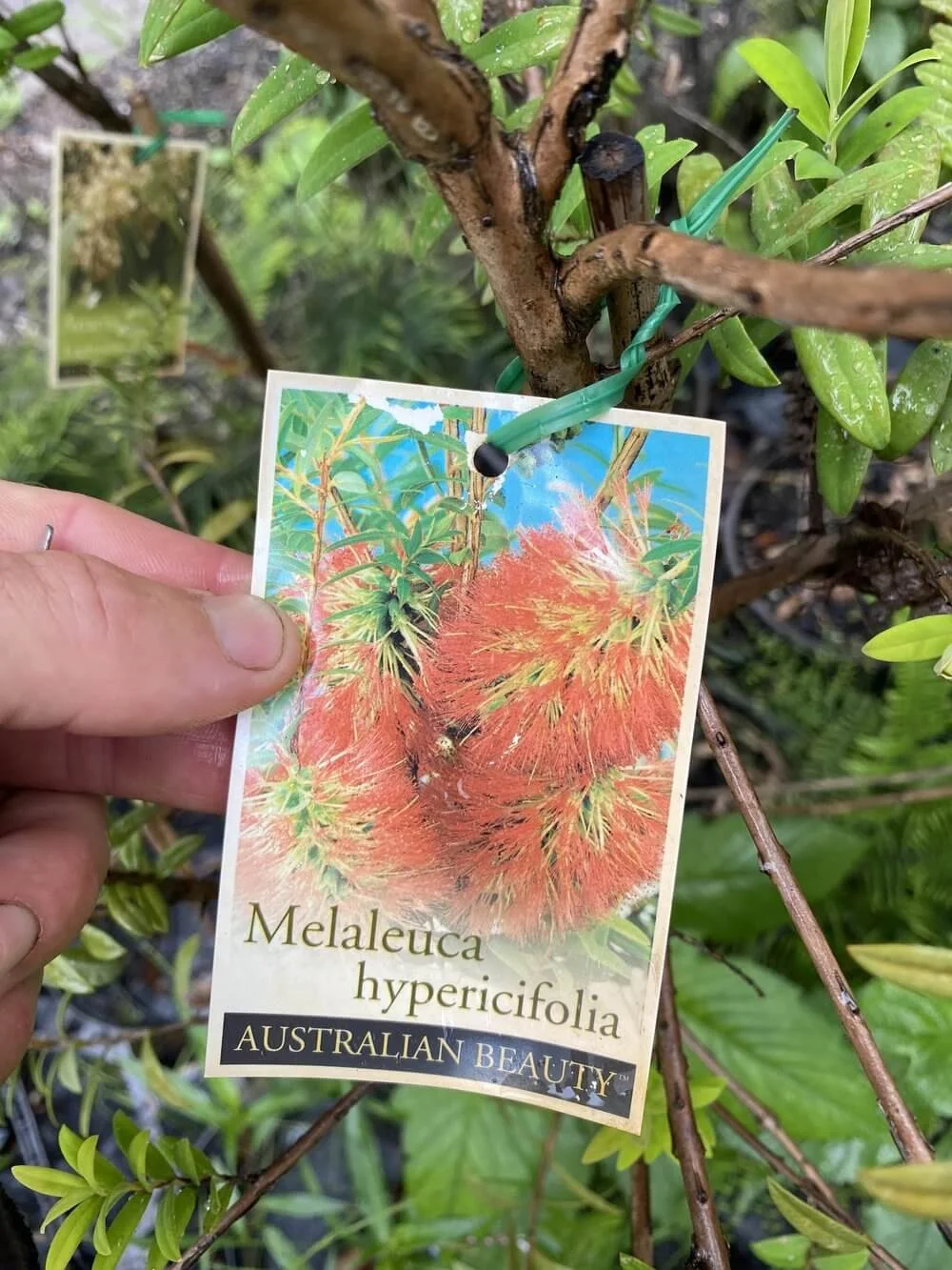 Melaleuca hypericifolia (also known as hillock bush) is a native plant that is great for attracting bees